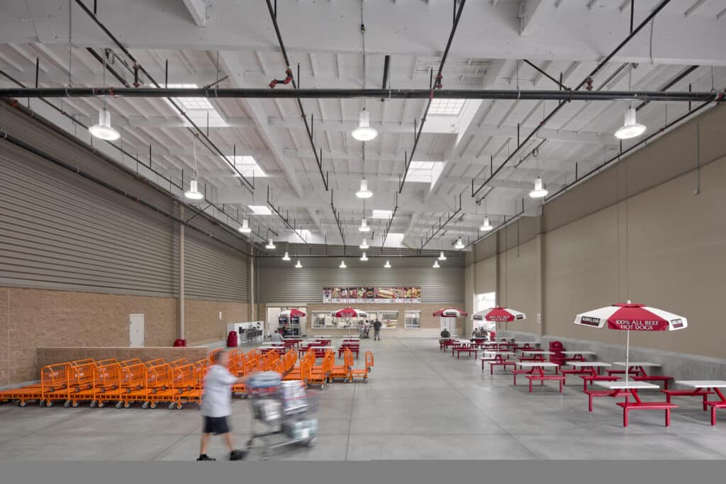 Our project involved the tenant improvement of an existing 175,000 SF building to accommodate a new Costco Business Center. The scope of work encompassed various tasks, including roof structural upgrades and the installation of a new roof with wood sheeting. Additionally, new structural openings were created in existing tilt walls, along with slab polishing and the development of a designated food service area. The project also included the installation of large refrigeration and freezer boxes within the warehouse, as well as the application of new finishes to enhance the aesthetic appeal. The project included selective building demolition and the implementation of all new site utilities, including a water collection cistern. New parking lots and landscaping were integrated into the site to enhance functionality and aesthetics.