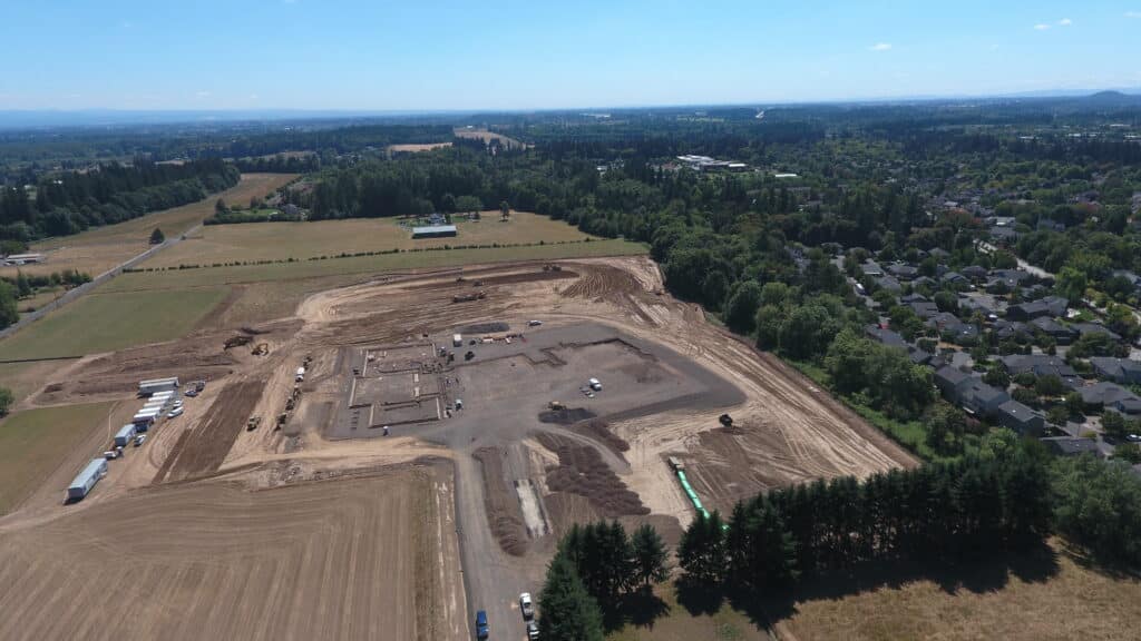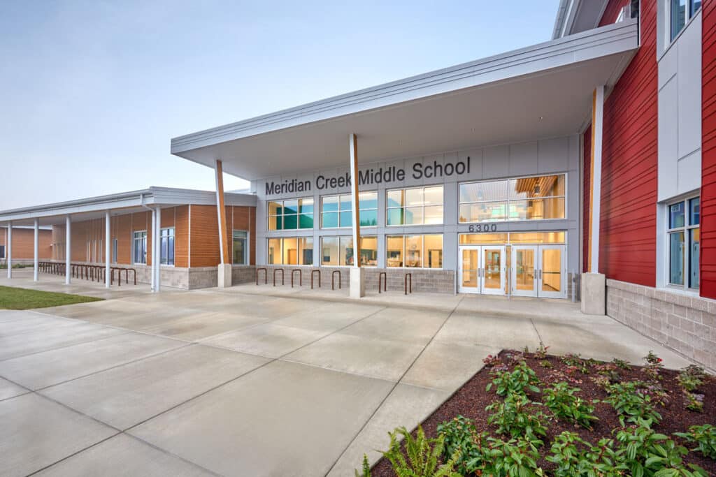 Meridian Creek Middle School was constructed on a newly designated 15 acre site within the city limits, positioned just south of a forthcoming Frog Pond housing development. The entire plot is designed to channel its drainage to a retention pond, which hosts an impressive array of over 14,000 plants. These plants, bolstered by an 18-inch soil media layer, function as a natural filtration system, directing water flow directly into a wetland area situated on the western edge of the site.
