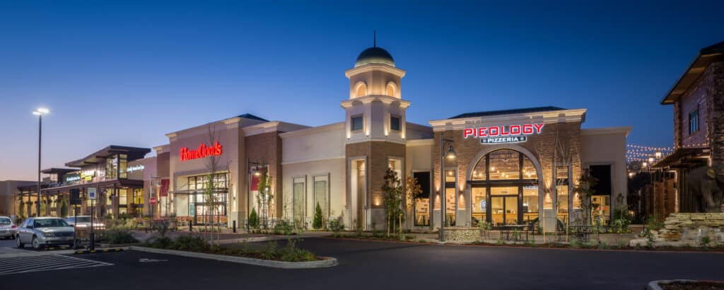 In addition to on-site construction, extensive off-site work was undertaken to improve infrastructure and accessibility. This included widening Nyberg Street, installing two new 4-way traffic signal intersections, and creating two new City of Tualatin streets—Barngrover Street and Seneca Street. These enhancements were integral to seamlessly integrating the shopping center into the surrounding urban landscape. Today, Nyberg Rivers stands as a testament to successful urban redevelopment, offering a dynamic mix of retail, dining, and community spaces.