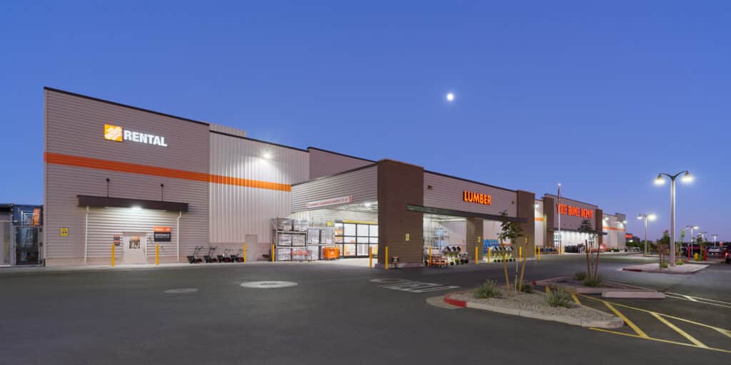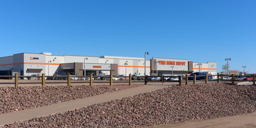 Robinson Construction completed the ground-up construction of a new 110,000-square-foot Home Depot store on an 11-acre site designed for future development, including six additional outlots. The project centered around a pre-engineered Butler metal building and included a 30,000-square-foot covered garden center. Our scope encompassed the full building shell, structural canopies, comprehensive interior tenant improvements, and installation of owner-furnished equipment and finishes.