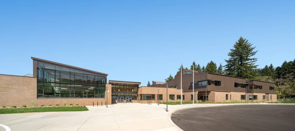 Beatrice Morrow Cannady Elementary School is 65,000 SF and located on a steeply sloped field of Happy Valley. The site required over 20,000 CY of imported fill material in order to balance the design. All utilities were brought in from an offsite street improvement over a half mile away. The building consisted of a CMU gymnasium, brick veneer, and sheet metal. The project was under budget at the time of bid, allowing the school district to add additional scope items including upgraded interior finishes and amenities.